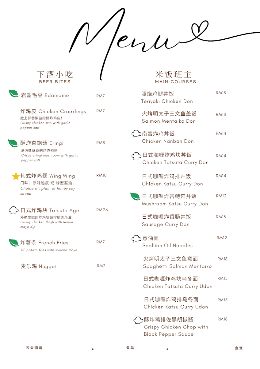 Welcome to 農夫酒館 Farmer's Tavern, a cozy cafe located in Kampar, Malaysia. This hidden gem offers a delightful fusion of flavors from various cuisines at affordable prices. The menu is a true testament to culinary diversity, featuring standout dishes like the Chicken Nanban Don, with its crispy fried chicken and tangy sauce, and the Spaghetti Salmon Mentaiko, which is praised for its rich, creamy taste.